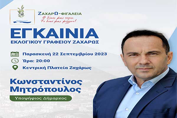 Κ. Μητρόπουλος - Πρόσκληση Εγκαινίων Εκλογικού Γραφείου Ζαχάρως