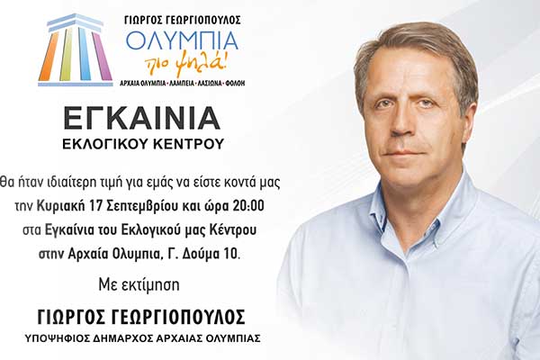"ΟΛΥΜΠΙΑ πιο ψηλά!"-Γ.Γεωργιόπουλος: Την Κυριακή 17/9 τα εγκαίνια του εκλογικού κέντρου