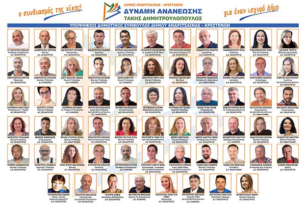 Τάκης Δημητρουλόπουλος: Οι 63 υποψήφιοι Δημοτικοί Σύμβουλοι του συνδυασμού «ΔΥΝΑΜΗ ΑΝΑΝΕΩΣΗΣ»