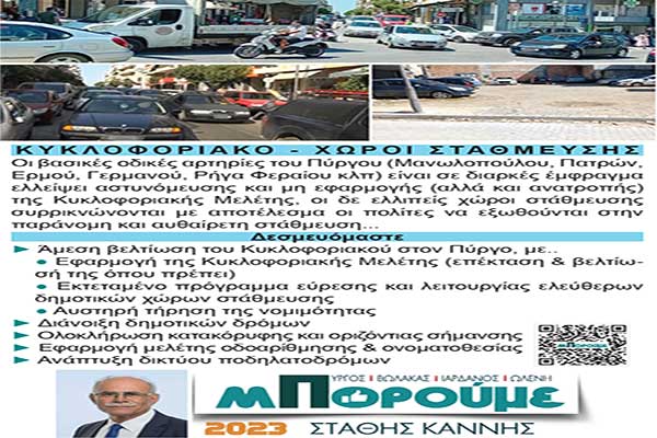 Στάθης Καννής: «Κυκλοφοριακό-Χώροι Στάθμευσης - Δεσμευόμαστε»