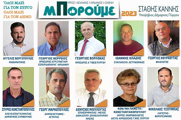 10 υποψήφιοι με την παράταξη «ΜΠΟΡΟΥΜΕ» του Στάθη Καννή για τον Δήμο Πύργου