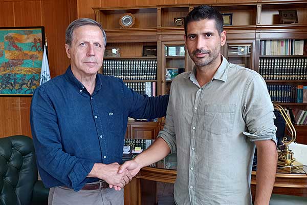 O πρόεδρος της τοπικής κοινότητας Σμέρνας Γιάννης Θεοδωρόπουλος στο πλευρό του Δημάρχου Ζαχάρως Κώστα Αλεξανδρόπουλου