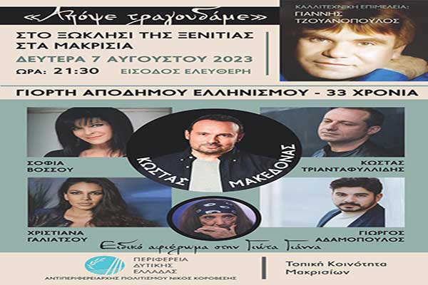 «Απόψε τραγουδάμε» την Δευτέρα στα Μακρίσια με τον Κ. Μακεδόνα - Ειδικό αφιέρωμα στη Γιώτα Γιάννα