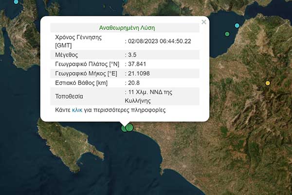 Ηλεία: Αισθητός σεισμός 3,5 Ρίχτερ - Στην Κυλλήνη το επίκεντρο