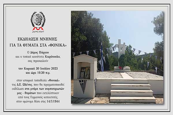 Δήμος Πύργου: Την Κυριακή 30/7 η ετήσια τελετή - προσκύνημα στα ΦΟΝΙΚΑ