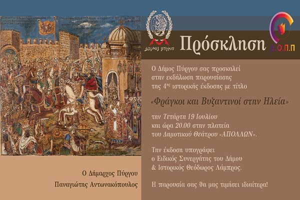 2ο Διεθνές Φεστιβάλ Αρχαίας Φειάς-Παρουσιάζεται η τέταρτη έκδοση του Δήμου Πύργου «Φράγκοι και Βυζαντινοί» στην Ηλεία στην πλατεία του Δημοτικού θεάτρου «ΑΠΟΛΛΩΝ»