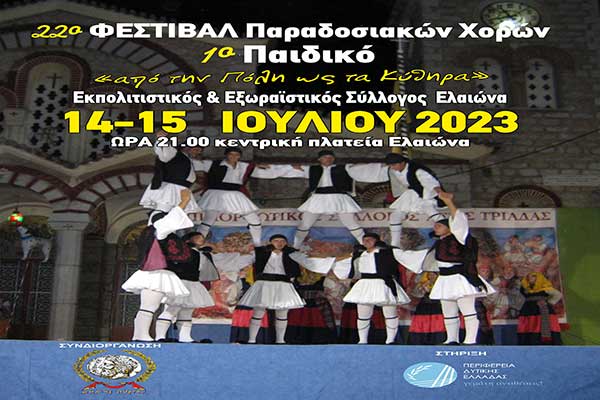 22ο Φεστιβάλ Παραδοσιακών χορών Ελαιώνα: «Απ’ την Πόλη ως τα Κύθηρα…»