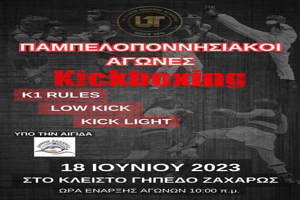 Κλειστό Γυμναστήριο Ζαχάρως: Παμπελοποννησιακοί Αγώνες Kickboxing την Κυριακή 18/6