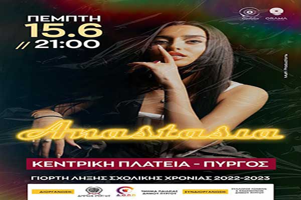 Δήμος Πύργου: Συναυλία με την Αναστασία για τη λήξη της σχολικής χρονιάς