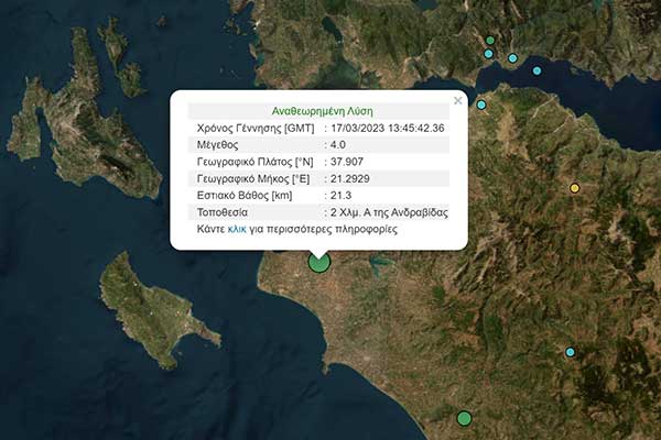 Ηλεία: Σεισμός 4 Ρίχτερ - Στην Ανδραβίδα το επίκεντρο