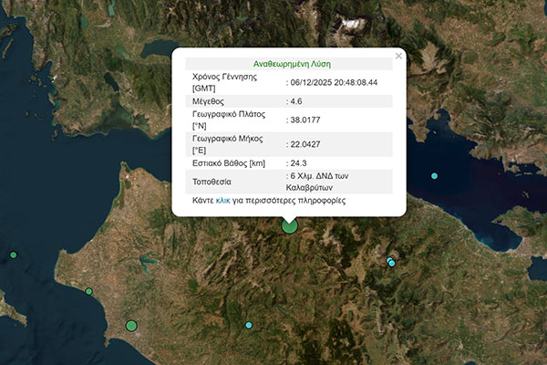 Ηλεία: Αισθητός σεισμός 4,6 Ρίχτερ - Στα Καλάβρυτα το επίκεντρο