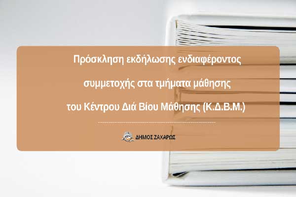 Δήμος Ζαχάρως: Πρόσκληση εκδήλωσης ενδιαφέροντος συμμετοχής στα τμήματα μάθησης του Κέντρου Διά Βίου Μάθησης (Κ.Δ.Β.Μ.)