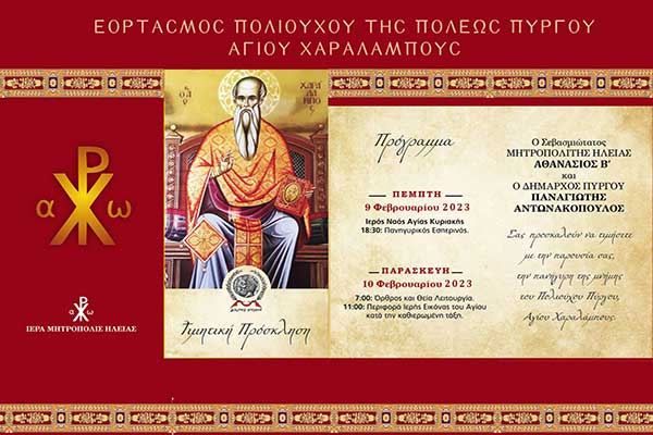 Πύργος: Εορτάζεται ο Πολιούχος Άγιος Χαράλαμπος - Το πρόγραμμα