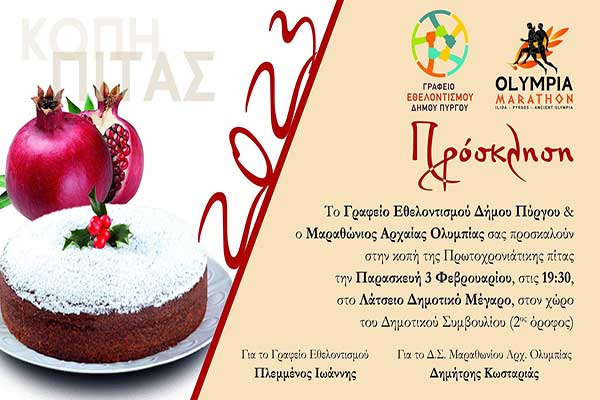 Το Γραφείο Εθελοντισμού Δήμου Πύργου κόβει την πίτα του με τον Μαραθώνιο Ολυμπίας
