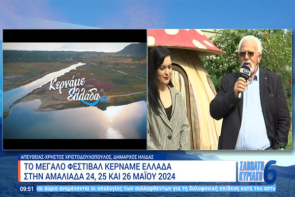 Στην ΕΡΤ ο Δήμαρχος Ήλιδας Χρήστος Χριστοδουλόπουλος για τη μεγάλη διοργάνωση του Φεστιβάλ ΚΕΡΝΑΜΕ ΕΛΛΑΔΑ 2024 [PHOTOS]