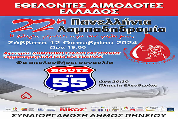 Ο Δήμος Πηνειού συμμετέχει στην 22η Πανελλήνια Λαμπαδηδρομία Εθελοντών Αιμοδοτών Ελλάδος