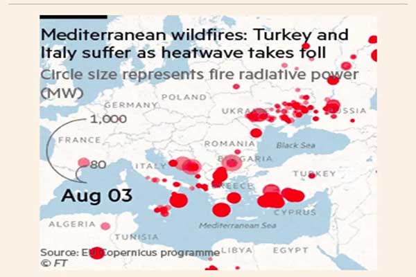 Financial Times: «Έκρηξη» δασικών πυρκαγιών στη Μεσόγειο - 300 περισσότερες από τον ετήσιο μέσο όρο