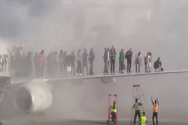 Αεροπλάνο τυλίχθηκε στις φλόγες στο αεροδρόμιο του Ντένβερ -Βγήκαν στο φτερό να σωθούν οι επιβάτες [βίντεο]