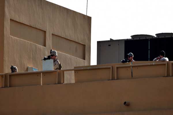 στην περιοχή κοντά στην αμερικανική πρεσβεία της Βαγδάτης, μετά από ισχυρές εκρήξεις που προκλήθηκαν από εκτόξευση ρουκετών σε κοντινή απόσταση από το κτίριο.