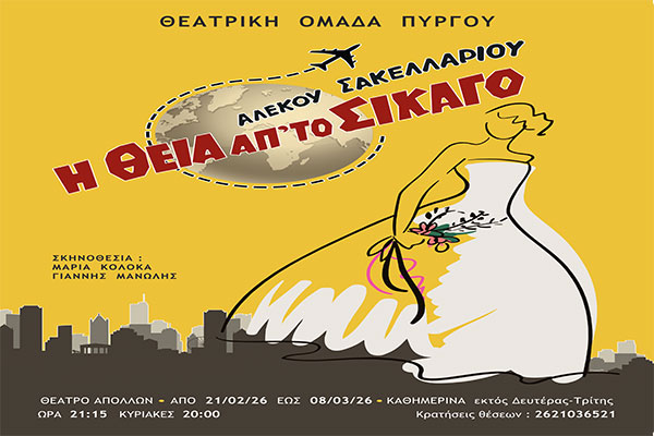 - Θεατρική Ομάδα Πύργου: Η "Θεία απ'το Σικάγο" από τις 21/2 στο Θέατρο Απόλλων