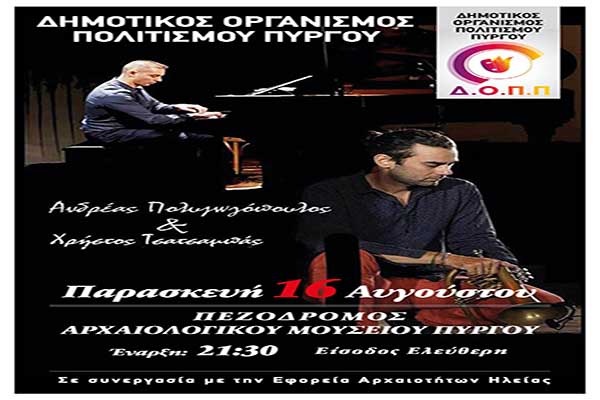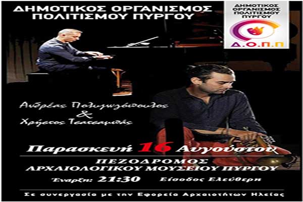 Πύργος: Αυγουστιάτικη Πανσέληνος στο Αρχαιολογικό Μουσείο με Χρήστο Τσατσαμπά και Ανδρέα Πολυζωγόπουλο