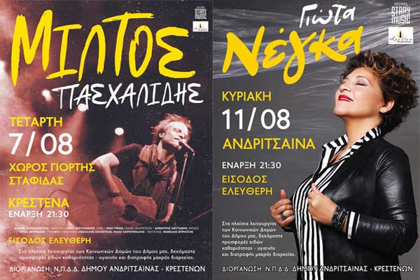 Ο Μίλτος Πασχαλίδης και η Γιώτα Νέγκα σε Κρέστενα και Ανδρίτσαινα