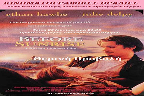 Κινηματογραφικές Βραδιές: Θερινό σινεμά στο 1ο Γυμνάσιο με το "Before Sunrise"