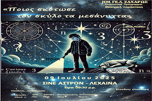 Το 14ο Διεθνές Φεστιβάλ Ανδραβίδας-Κυλλήνης ανοίγει αυλαία: «Ποιος σκότωσε τον σκύλο τα μεσάνυχτα» από την Θεατρική Ομάδα του Ημ. ΓΕ.Λ. Ζαχάρως