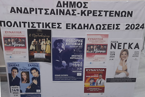 Δήμος Ανδρίτσαινας-Κρεστένων: Συναυλίες με καλλιτέχνες πρώτης …γραμμής