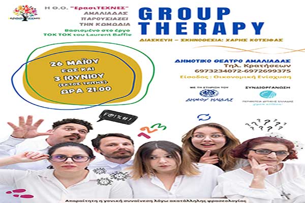 Η Θεατρική Ομάδα «ερασιΤΕΧΝΕΣ» Αμαλιάδας παρουσιάζει την Ψυχοθεραπευτική Κωμωδία «GROUP THERAPY»