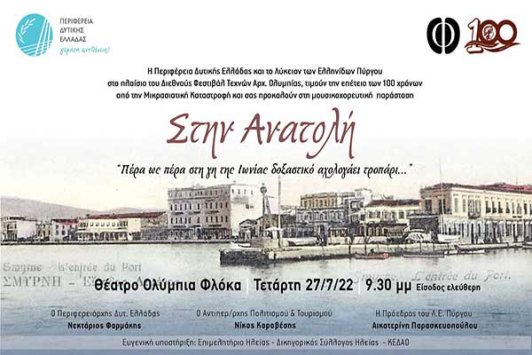 «Στην Ανατολή..»: Αύριο Τετάρτη η μεγάλη μουσικοχορευτική παράσταση του Λυκείου Ελληνίδων Πύργου για τα 100 χρόνια Μικρασιατικής Καταστροφής