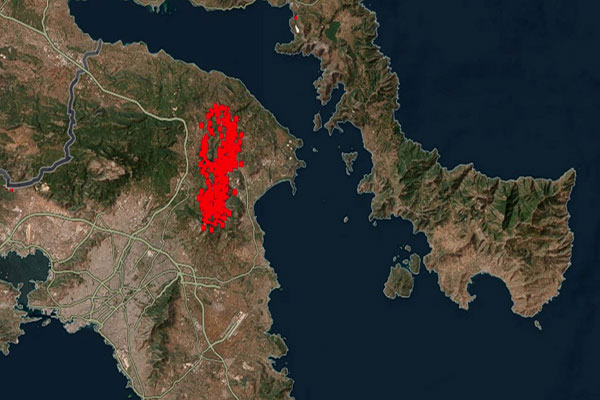 Φωτιά στην Αττική: Στα 30 χιλιόμετρα το πύρινο μέτωπο, σοκάρει ο χάρτης της NASA [εικόνα]