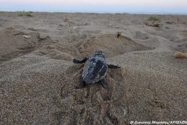 Εκκόλαψη νεοσσών θαλάσσιας χελώνας Caretta caretta στις παραλίες του Εθνικού Πάρκου Υγροτόπων Κοτυχίου-Στροφυλιάς [PHOTOS]