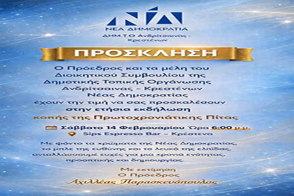 ΔΗΜΤΟ Ανδρίταινας-Κρεστένων: Νέα πολιτική χρονιά – Κοπή Πρωτοχρονιάτικης Πίτας