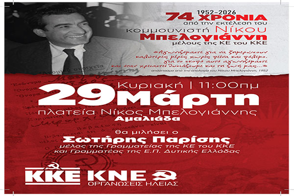 Τομεακή Επιτροπή Ηλείας ΚΚΕ: Εκδήλωση τιμής για τον κομμουνιστή - ήρωα Νίκο Μπελογιάννη
