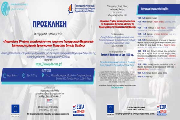 ΠΔΕ: Την Τετάρτη 1η Νοεμβρίου η ημερίδα του Περιφερειακού Μηχανισμού Διάγνωσης