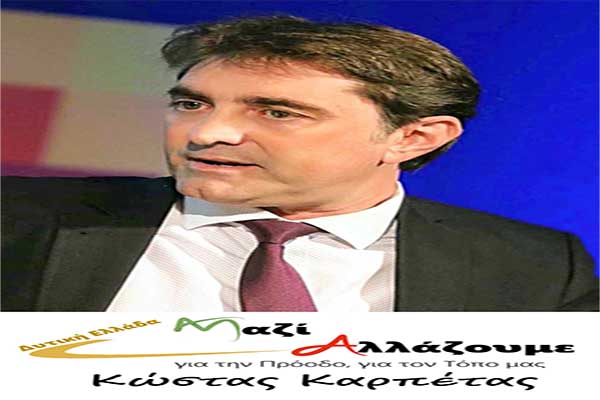 Ο Κώστας Καρπέτας ανεξάρτητος Υποψήφιος Περιφερειάρχης Δυτικής Ελλάδας