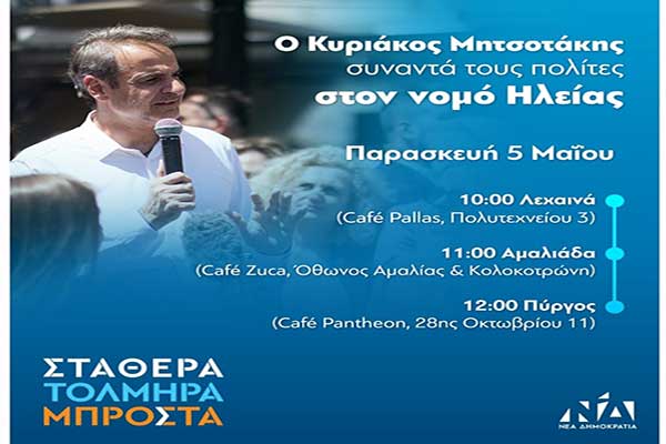 Στην Ηλεία αύριο Παρασκευή ο Κυριάκος Μητσοτάκης - Το πρόγραμμα