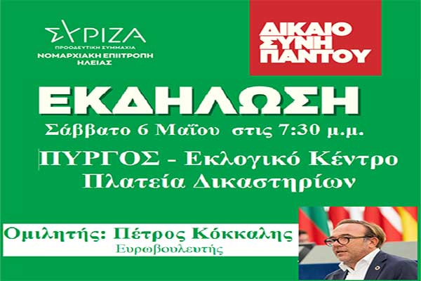 ΣΥΡΙΖΑ Ηλείας: Παρουσίαση του ψηφοδελτίου της Ηλείας και ανοιχτή πολιτική εκδήλωση το Σάββατο 6/5