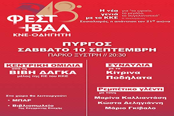 48ο Φεστιβάλ ΚΝΕ – Οδηγητή: Στις 10 Σεπτέμβρη η ‘’στάση’’ στον Πύργο