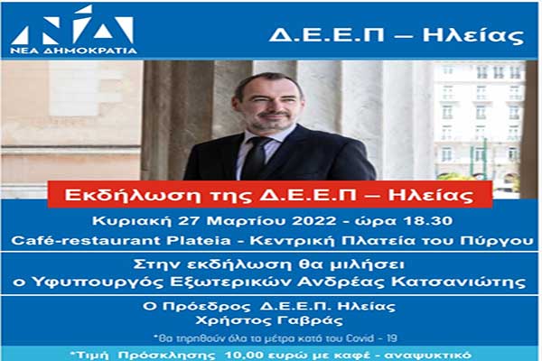 Την Κυριακή με Ανδρέα Κατσανιώτη η πολιτική εκδήλωση από την ΔΕΕΠ Ηλείας