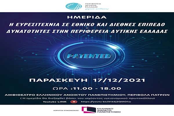 Ημερίδα: «Η Ευρεσιτεχνία σε Εθνικό και Διεθνές Επίπεδο. Δυνατότητες στην Περιφέρεια Δυτικής Ελλάδας»