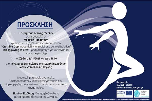 ΠΕ Ηλείας: Μουσική παράσταση με στόχο την κοινωνική και πολιτιστική ένταξη ατόμων με αναπηρίες – Ευρωπαϊκό έργο CROSS THE GAP