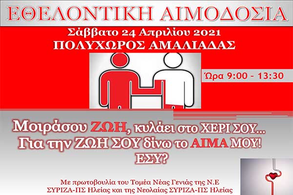 Εθελοντική Αιμοδοσία από τους νέους του ΣΥΡΙΖΑ Ηλείας: "Η ύψιστη προσφορά στον συνάνθρωπο!"