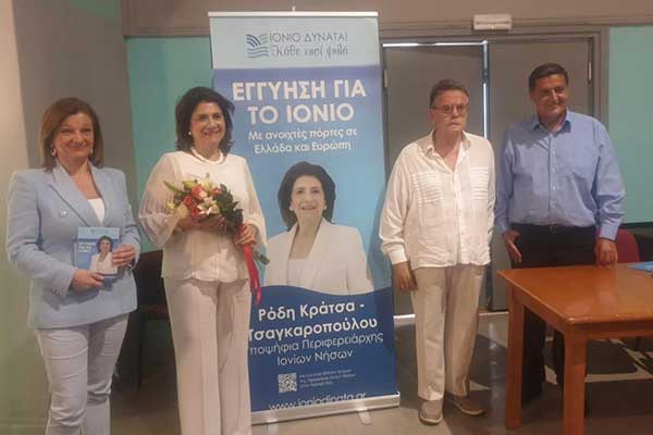 Ως Πρόεδρος της Επιτροπής Περιβάλλοντος της Βουλής, η Δρ. Αυγερινοπούλου αναφέρθηκε στο σημαντικό έργο που έχει να επιδείξει η Περιφέρεια Ιονίων Νήσων, υπό την Περιφερειάρχη κυρία Ρόδη Κράτσα – Τσαγκαροπούλου, στον τομέα της προστασίας του περιβάλλοντος, όπως το Περιφερειακό Σχέδιο Προσαρμογής στην Κλιματική Κρίση (ΠεΣΠΚΑ). Μια από τις σημαντικότερες προκλήσεις στην οποία ανταποκρίθηκε επιτυχώς η Περιφέρεια ήταν η ανασυγκρότηση της Κεφαλονιάς και της Ιθάκης μετά τον Ιανό και η περαιτέρω «θωράκιση» των Ιονίων Νήσων από τις φυσικές και ανθρωπογενείς καταστροφές. Εξίσου σημαντικό, όπως σημείωσε η κα Αυγερινοπούλου, είναι και το έργο της κυρίας Ρόδης Κράτσα – Τσαγκαροπούλου στην προβολή του Γεωπάρκου Κεφαλονιάς – Ιθάκης, όπου, πλέον, αναγνωρίζεται η ιδιαίτερη αξία του σε διεθνές επίπεδο, όπως και η μέριμνά της για την στήριξη του βιώσιμου τουρισμού στα Επτάνησα μέσω και της εκπόνησης στρατηγικής μελέτης ανάπτυξης βιώσιμου τουρισμού. Τα αποτελέσματα των μεθοδευμένων κινήσεων της κυρίας Κράτσα στον τομέα του τουρισμού είναι, άλλωστε, ορατά, καθώς τα Ιόνια Νησιά και δη η Κεφαλονιά προσελκύουν μεγάλο αριθμό τουριστών.